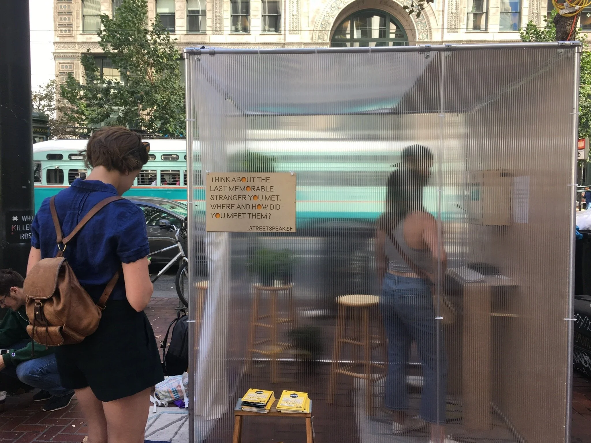 Street Speak is a mobile, storytelling platform that allows people to tell and hear brief stories in response to an interchangeable prompt. Download the festival wrap-up report here. Street Speak encourages passersby to become engaged with others in the built environment they share, and connects them to others in their community. The interactive design allows individuals to activate the spaces where they live by contributing their own experiences to expand the reach of the platform. Street Speak can be used by people of all ages and abilities to record responses and offer opinions, tapping into the diverse needs of each community. Restart [your city] hopes to use Street Speak as a tool to inform how we build our cities with the input of the people who live there.